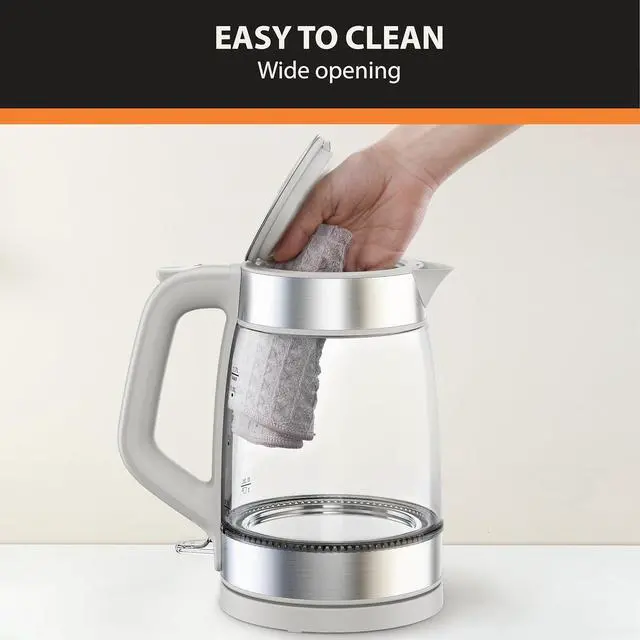 ENHANCED SAFETY & SMART FEATURES: Safe boil-dry protection and auto shut-off, with an anti-scale filter for clean water and a convenient wide opening