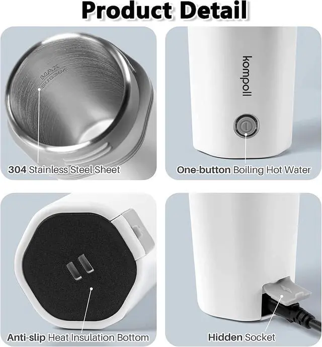 Mini Hot Water Boiler, 5 Minutes Fast Boiling Water - Our Portable Electric Travel Kettle brought the water to a boil in under 5 minutes!! It' s a way to get easy access to hot water. You can make hot water anywhere when there is a electric socket. Highly recommended for anyone who travels frequently or great for staying in hostels or hotels.