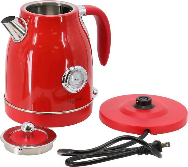 MegaChef 1.7 Quart Electric Tea Kettle and 2 Slice Toaster Combo (Red)