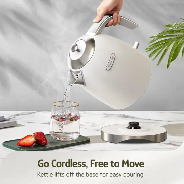 One-Touch LED Control & Cordless Convenience - Simpler than ever, press the illuminated LED button to start. The cordless kettle lifts off its compact 360° base for tangle-free storagesimply stash the kettle away when not in use, keeping counters clutter-free.