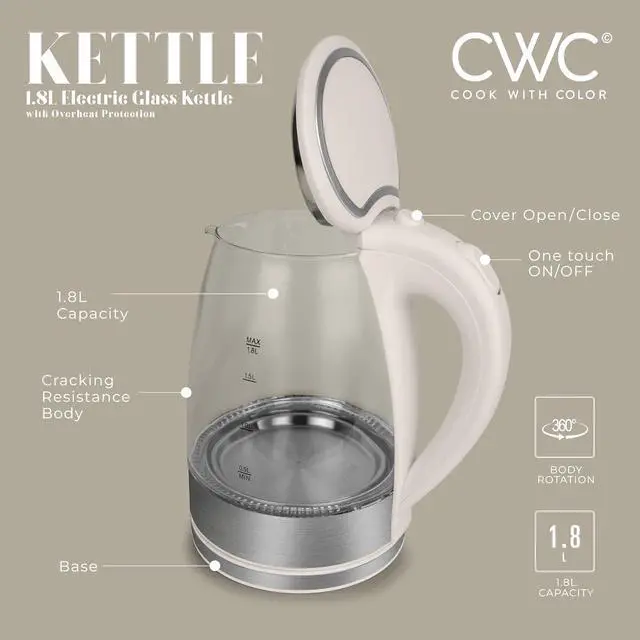 Generous Capacity: Boil up to 1.8L of water, making it great for serving multiple cups or preparing large batches of hot beverages for gatherings.