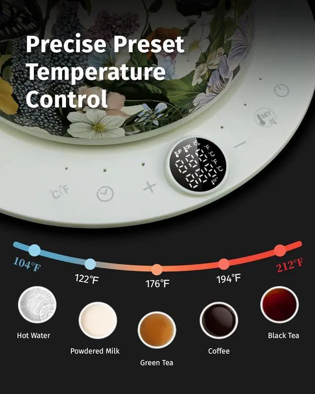 Hold Your Heat: After boiling, press " SET" to enter Keep Warm mode and maintain your desired water temperature. Use the " +" and " -" buttons to fine-tune the hold temperature between 104°F and 212°F (40°C to 100°C). Perfect for pour-over coffee, delicate teas, instant oatmeal, or keeping hot water ready throughout the day, no need to reheat between brews