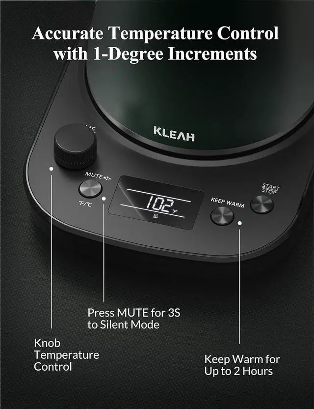 RAPID BOIL & 2H KEEP WARM: Boil up to 0.8L of water in 35 minutes with 1200W quick-heating element and keep warm for 2 hours. In addition, the Fahrenheit/Celsius convert button of gooseneck coffee kettle also acts as a MUTE button, eliminating annoying beeps for a quieter brewing experience