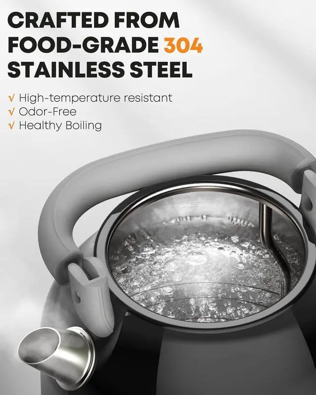 PREMIUM MATERIALS FOR LONG-LASTING PERFORMANCE. The interior of our electric tea kettle is crafted from high-quality 304 stainless steel, and all water-contacting plastic parts are BPA-free, ensuring that every cup you drink is safe, and healthy, offering peace of mind for you and your family. The exterior is coated with a durable finish.