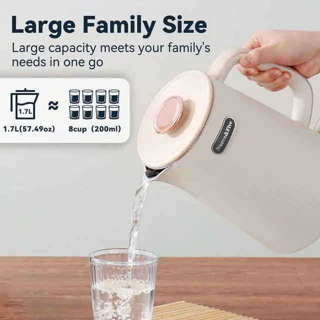 1.7L Large Size CapacityThe electric hot water kettle kettle can boil enough water to serve 6-7 people of tea, coffee, or hot beverages in one go. The electric water kettle is perfect for gatherings or serving guests, ensuring everyone has a hot drink. With the family-friendly large capacity of the electric water boiler kettle, you can easily meet the different needs of your entire household, from morning routines to evening relaxation.