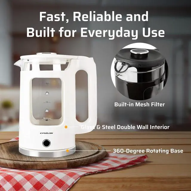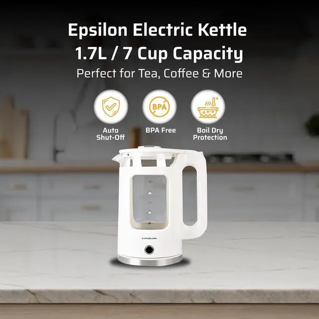 Electric Kettle Design: With a variety of choices, the Epsilon Electric Kettle Collection offers all glass kettles, double walled stainless steel hot water kettles, and and also glass inner and PP outer walled water boilers that are cool to the touch.