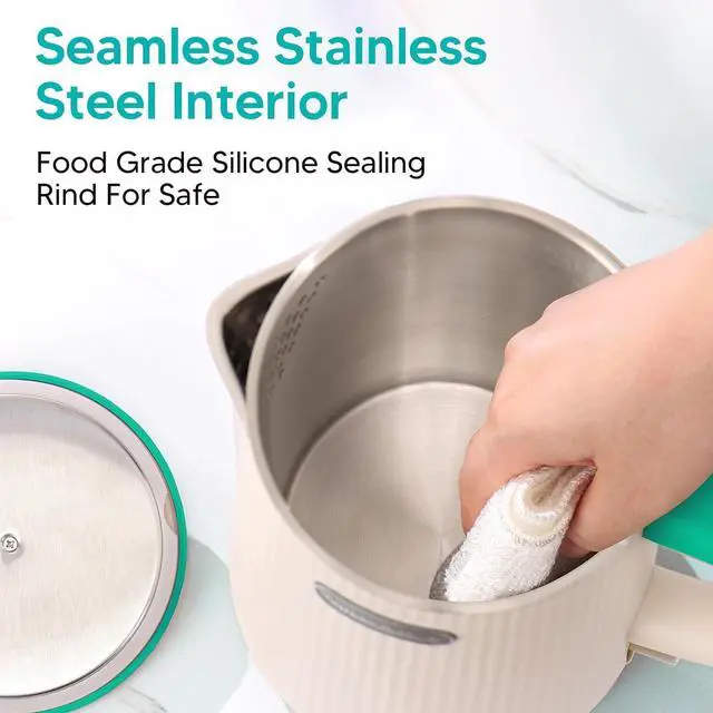 Enjoy Safe and Healthy Drinking Water~ Made from the seamless 304 stainless steel interior (stainless steel liner, stainless steel spout, stainless steel lid) and the food-grade material sealing ring on the lid, this electric tea kettle provides hot drinks with the pure flavor and long-term operation. The wide opening and removable lid make the electric water boiler kettle easy to reach hand in for cleaning.