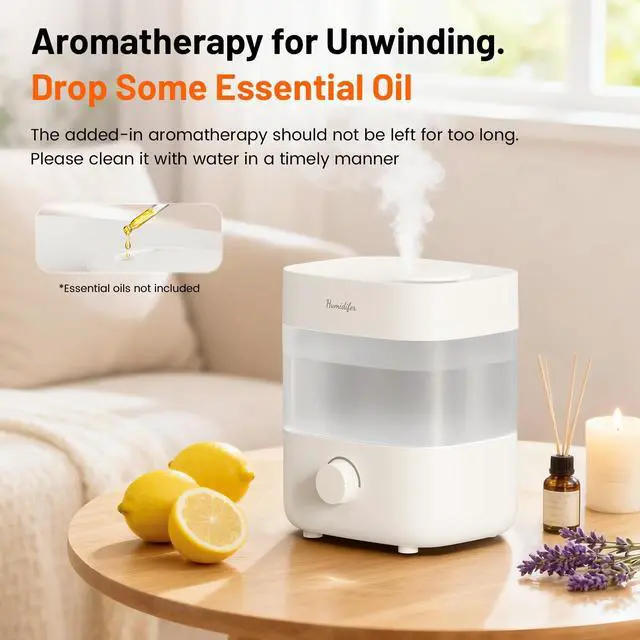 - () & -: The high-frequency ultrasonic chip ensures ultra-quiet operation at under 20 decibels, making it ideal for light sleepers and babies. The built-in auto shut-off activates when the water runs out, preventing dry burning and ensuring safe use, even overnight.