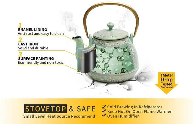 These Toptier retro looking functional teapot made of sturdy cast iron, they are more sturdy than stoneware, porcelain, stainless, aluminum and more. Creation of Toptier ensures you get what you pay for, BEWARE OF CHEAP KNOCK OFFS!