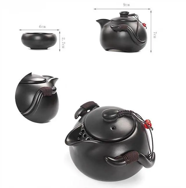Hoobar Ceramic Kungfu Tea Set,Portable Travel Tea Set with Teapot,Teacups,Tea Canister,Tea Tray and Travel Bag