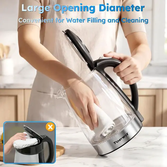 [Elegant Looking & Stylish Design] - Topwit electric glass kettle has a stunning look and the transparent design, make it even more attractive. The indicator technology which indicates heating will automatically to light up as the heating starts and auto shut off after boiled. The delicate yet classy looking glass kettle works like a charm and adds beauty to your kitchen.