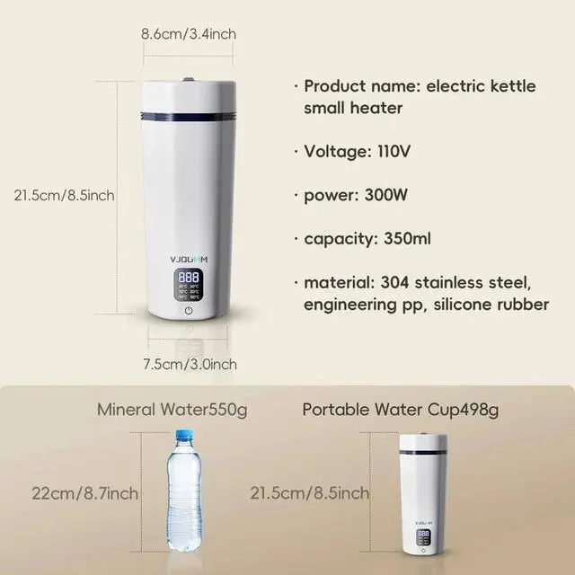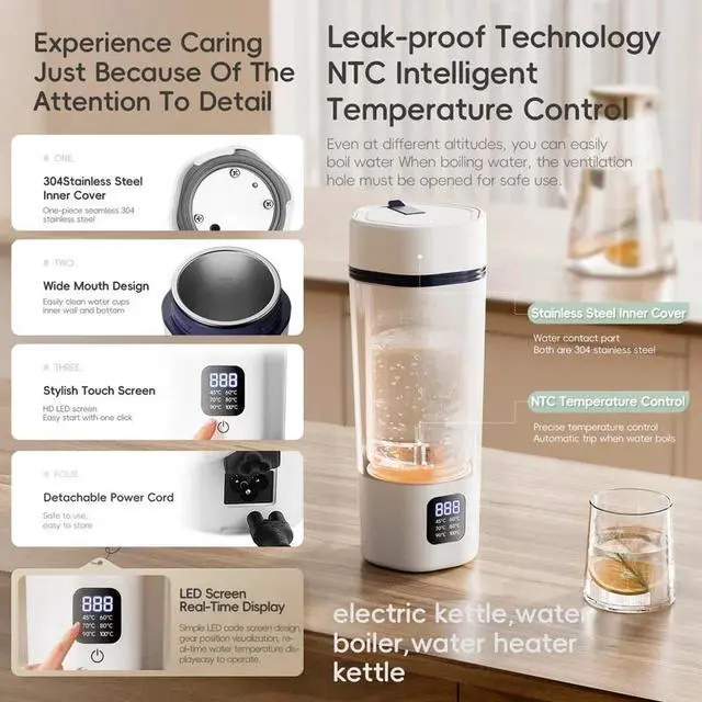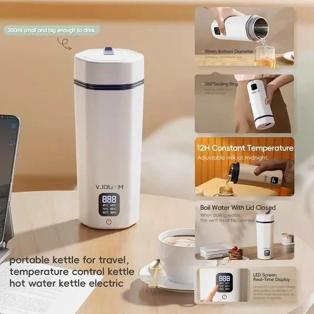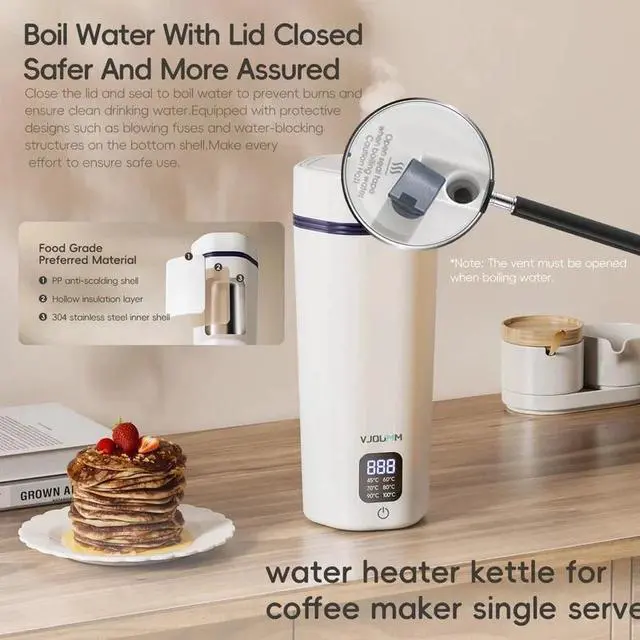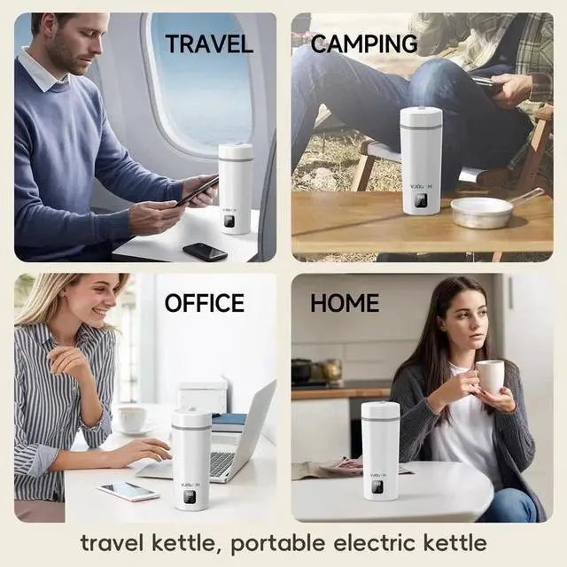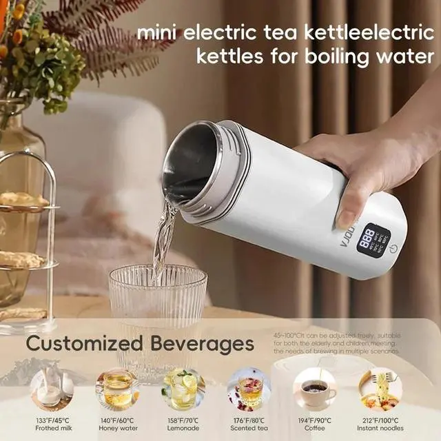 Travel Electric Kettle Small Portable Mini Tea Coffee Hot Water Kettle Boiler for Travel & Work with Cup Bag, 304 Stainless Steel, 4 Temperature Controls, Auto Shut Off & Boil Dry Protection