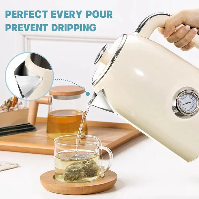 EXCELLENT WORKMANSHIP AND DESIGN: The electric kettle features a lift-off lid and wide-diameter design, making it easier to clean and catch water. The snap design of the lid increases stability and makes pouring safer. The base combines storage and non-slip features, which is both practical and beautiful
