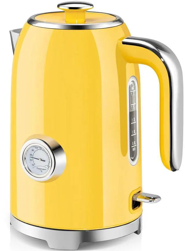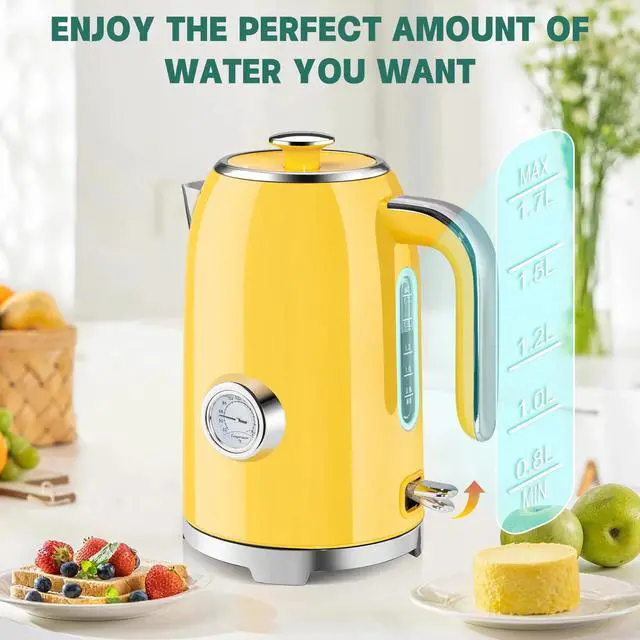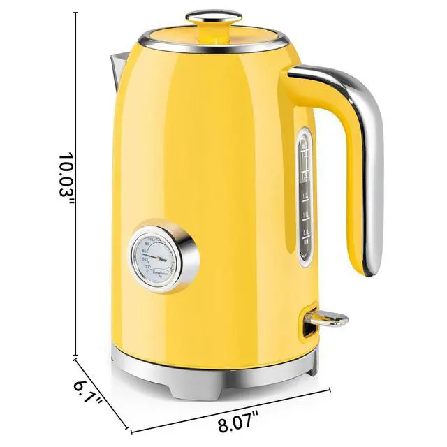 EASY TO CLEAN AND STORE: The electric kettle is designed with a 4-inch wide diameter and a detachable lid, which can be cleaned 360 degrees without dead ends, making washing and filling a breeze. In addition, the snap-on lid is closely fitted with the body of the teapot to effectively prevent water leakage and burns. The base takes into account the characteristics of storage and anti-skid, which is both practical and beautiful