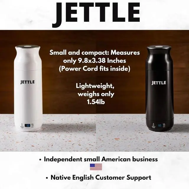 Bring It Anywhere - Small in size yet mighty in capacity. Our 450ml Jettle is bigger than most of our competitors, which means you can enjoy more of your beverage without needing to refill! No need to bring bulky hot water pots when you go traveling. Measuring 3.3x3.3x9.8", this portable hot water kettle will easily fit inside your luggage, backpack, or duffel bag. NOTE: This is wired for North American voltage ONLY. To use internationally at your OWN RISK you would need and adapter and converter.