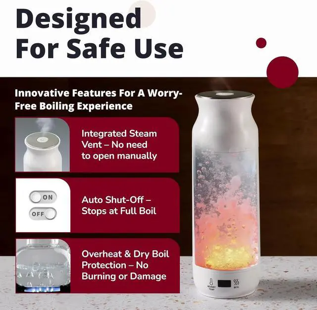 Boil Water in an Instant - Enjoy piping hot coffee no matter where you are. With just a push of its touch button control, this electric travel kettle gives you boiling water in less than 5 minutes.