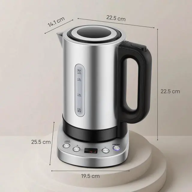 Fast boil with temperature control: This powerful 3000W kettle with UK Strix controller boils 250 ml in just 42 seconds. Choose from 5 temperatures (60/70/80/90/100 °C) to suit milk, tea, coffee or instant drinks