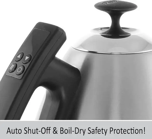 THE SIMPLE CONTROL PAD allows you to SELECT THE TEMPERATURE YOU WANT to reach (with a default of boiling) by adjusting with 5 degree increments. If youre a tea aficionado you may only want to bring your water to 175 degrees for your favorite green tea, or 195 degrees for Oolong. Our kettle lets you know when it has reached your selected temperature with 2 beeps.