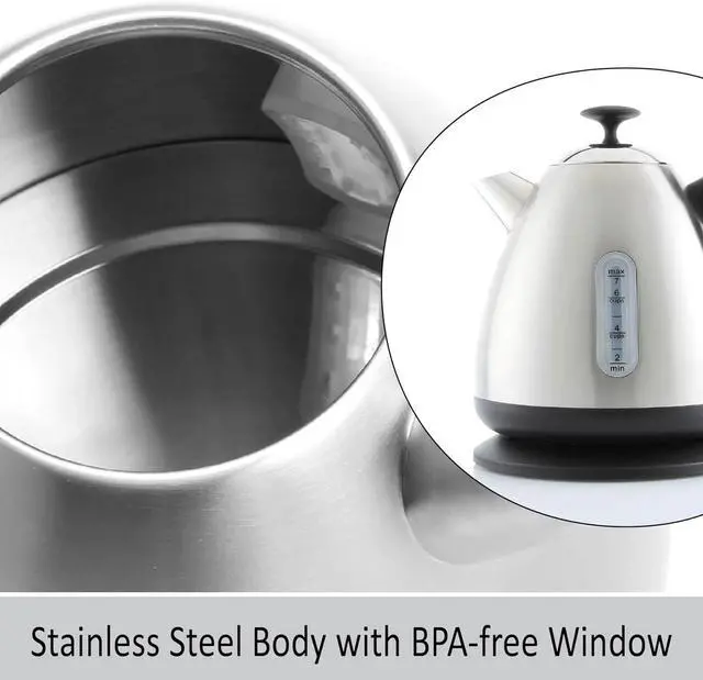 INTUITIVE DIGITAL VARIABLE TEMPERATURE CONTROLS are built right into the stay-cool handle for ease of access and use. The Vincent temperature-control electric Kettle with stainless steel interior is safe, fast and easy to use. The BPA-free window allows you to see how much water is left in the kettle, without having to look inside, and designates max and min water levels. Powerful 1500 Watts.