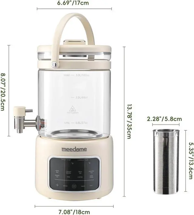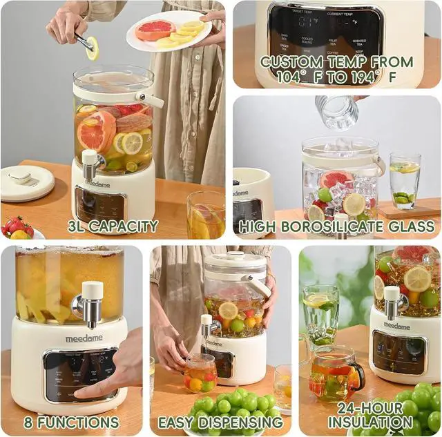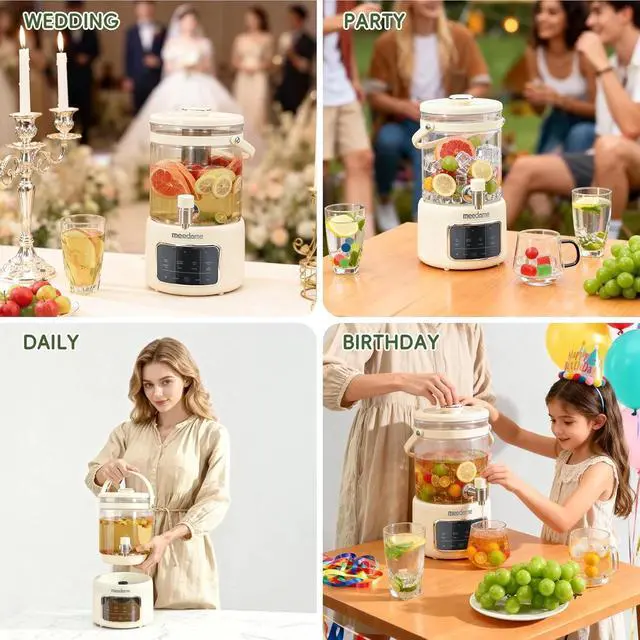 2-in-1 Innovative Design: Combines an electric tea kettle with a glass beverage dispenser with spigot (3L capacity), eliminating the need for separate appliances - perfect for brewing loose leaf tea, coffee, or serving iced drinks at parties.