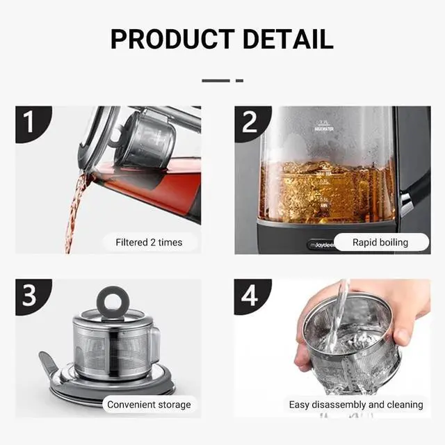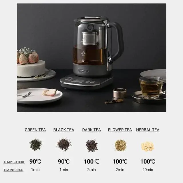 Auto-Lift Tea Infuser: Joydeem tea maker boasts second-gen lift tech, ensuring stable operation in high temps. Infuser handles up to 100g of tea leaves.