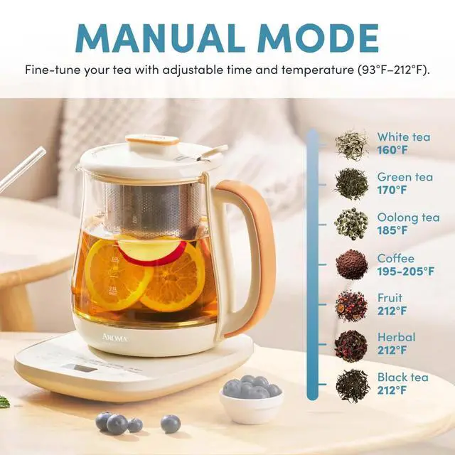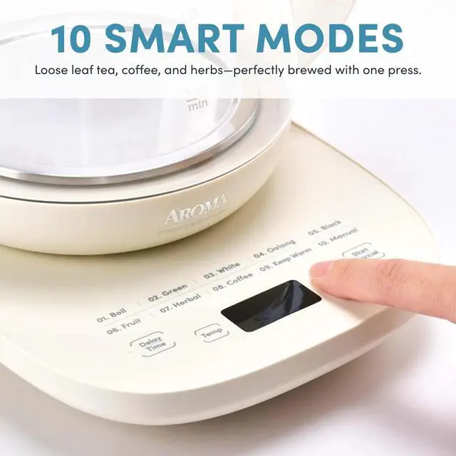 ALL TYPES OF TEA: Toggle through the menu with the touch of a button: green, white, oolong, black, fruit, or herbal! You can also rapid boil at 212°F or set to keep warm.