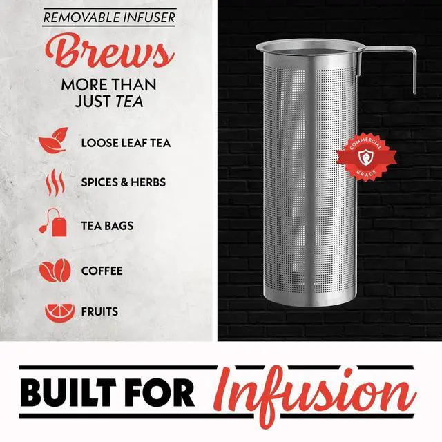 Removable tea infuser for loose leaf or bagged tea Brew directly in the kettle with the included stainless steel infuser for convenience and flavor