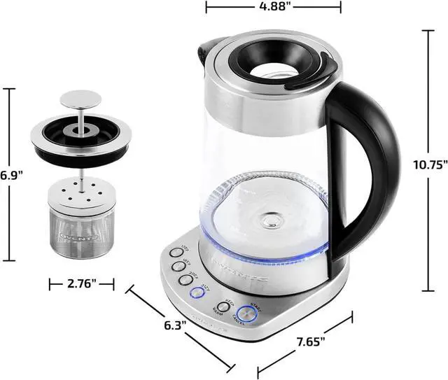 • Safety features including auto-shutoff and boil-dry protection.