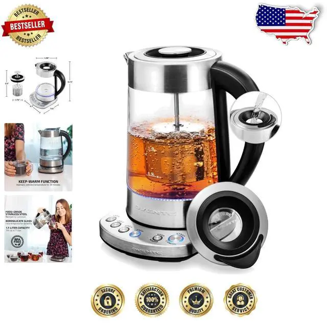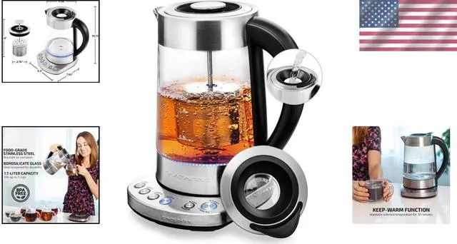 Glass Electric Kettle 1.7L: 1500W Fast Boil, Temp Control, Keep Warm, Infuser
