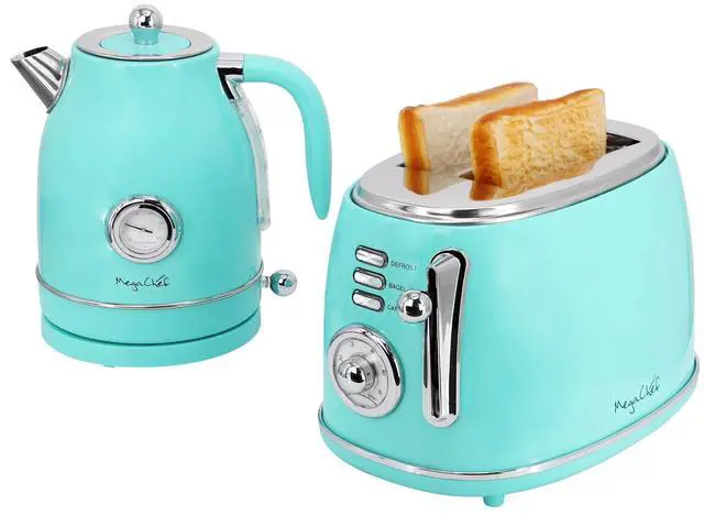 1.7 Liter Electric Tea Kettle and 2 Slice Toaster Combo in Turquoise