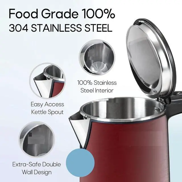PRECISE & SAFE - With the professional British Strix thermostat controlling system (world's leading thermostat), this kettle can automatically shut-off when the water is boiling. Additionally, it has boil-dry protection. Easy Clean - Use white vinegar, baking soda, water, cleaning bottle brush and microfiber cloth to clean your kettle and keep it looking new. This electric kettle is made of BPA-free food grade material. UL certificate approved.