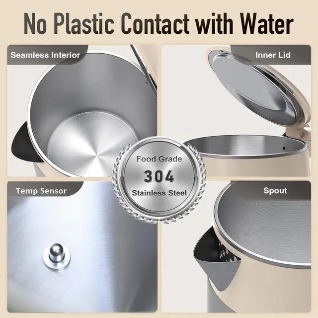 Upgrade your daily hot water experience with our premium 1.7 L FoodGrade Stainless Steel Electric Kettle, thoughtfully engineered for taste, safety, and temperature precision. Crafted from 100% foodgrade stainless steel, with no plastic contact during boiling, this kettle preserves the purest flavor in every cupensuring clean, healthy hydration every time. Equipped with doublewall insulation, this kettle delivers two-fold benefits: it keeps the interior water piping-hot while ensuring the exterior stays cool to the touch, offering both thermal efficiency and burn protection. Powered by a high-output 1500 W heating element, it brings water to boil significantly faster than traditional kettlestypically ready in under 6 minutes, saving you time and energy. Take full control with the 4inch touchscreen, featuring six preset programs optimized for different beverages: infant formula, green tea, white tea, oolong tea, coffee, and boiling. Tap to choose your ideal temperature, and the kettle handles the rest. Plus, its keep-warm function gently holds water at the precise temperature you selected for extended periodsperfect for leisurely sipping. Boasting a 1.7 L capacity, its ideal for family use, hosting guests, or preparing multiple servingsno frequent refills required. Robust safety features like automatic shut-off and boil-dry protection ensure peace of mind with every boil. With elegant stainless steel aesthetics and intuitive digital controls, this kettle delivers a refined brewing experience thats as stylish as it is functional.