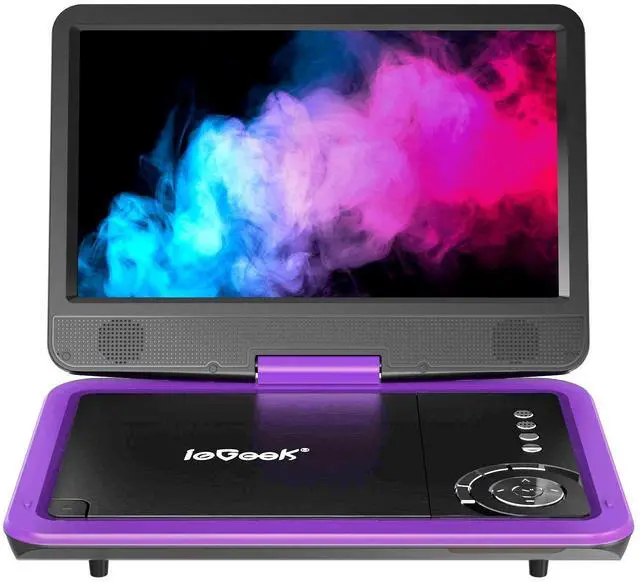 Enhanced Brightness Protective Swivel Screen10.5-inch swivel screen supports 270 degrees rotation and 180 degrees folding back. This ieGeek headrest DVD player could be tied to the car seat, the 1024*600 HD screen and double speaker below the screen bring ultimate visual enjoyment to your road trip.