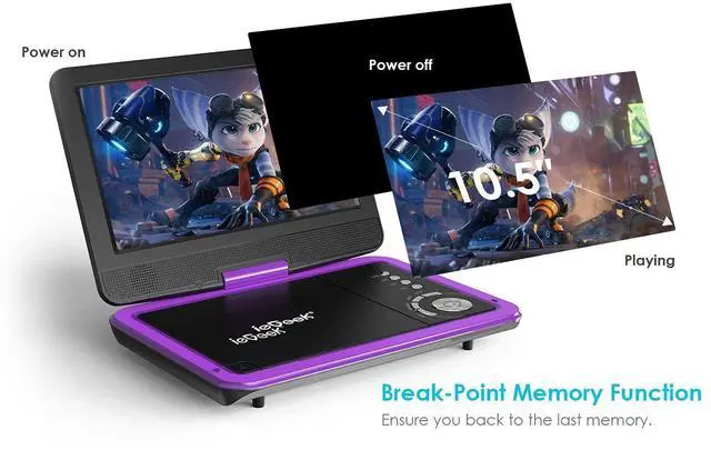 Upgraded TechnologyMore disc formats can be read with the upgraded laser. Adopting anti-shock and resume function technology, this portable DVD player for car ensures that you wont experience any interruption in the playing.