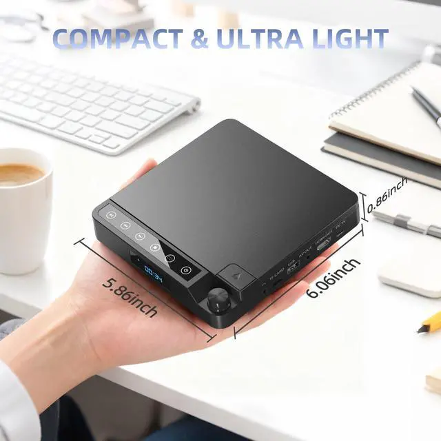 SMALL COMPACT DVD PLAYER: Mini DVD player measures just 5.8" x 6.0" x 0.8", making it perfect for small spaces or travel. Take your movies anywhereideal for car, RVs, dorm rooms, or family road trips. Flip-top design allows for easy disc insertion and ejection, even for kids and seniors