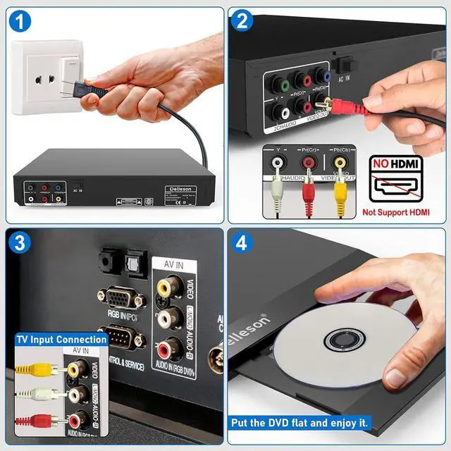 TV DVD player provide easy access to your TV with RCA cable, the traditional TV also can be hooked up to this home DVD player quickly. Make you reach the favorite audio and video within minutes. (RCA Cable Included) NOTE: No HDMI Connection.
