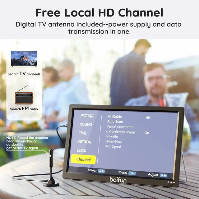 - Access Over-the-Air TV & FM Channels-The built-in antenna lets you enjoy local channels where signals are available. Simply plug in the included antenna and scan for channels. reception quality depends on your location and surroundings, please place it near a window or outdoors, away from home electronics. Channel availability varies by location.