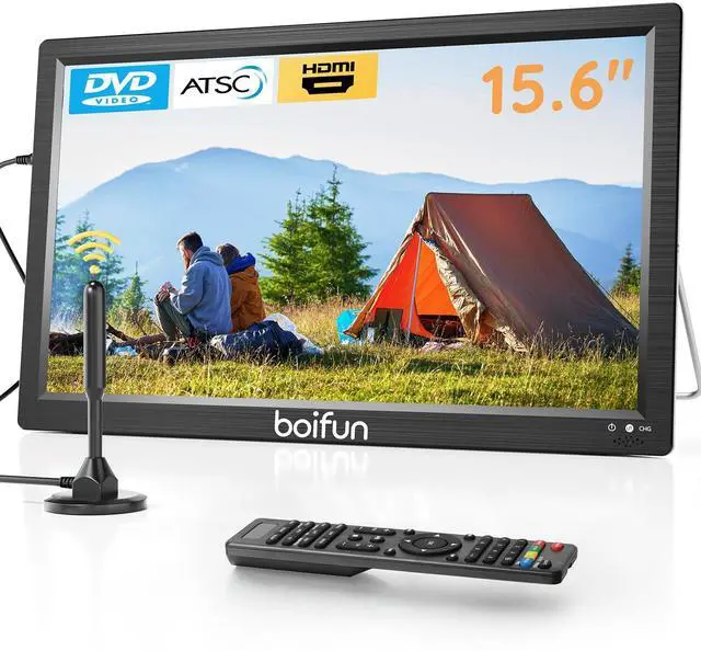 - Large Portable Screen You Can Carry -- Enjoy your favorite TV shows and DVDs on the go with this portable TV with DVD player, featuring a crisp 15.6-inch HD screen. Great for travel, outdoor adventures, or home entertainment. 180° adjustable rubber-armored stand protect-locks securely on any surface at any angle or hung on a hook.