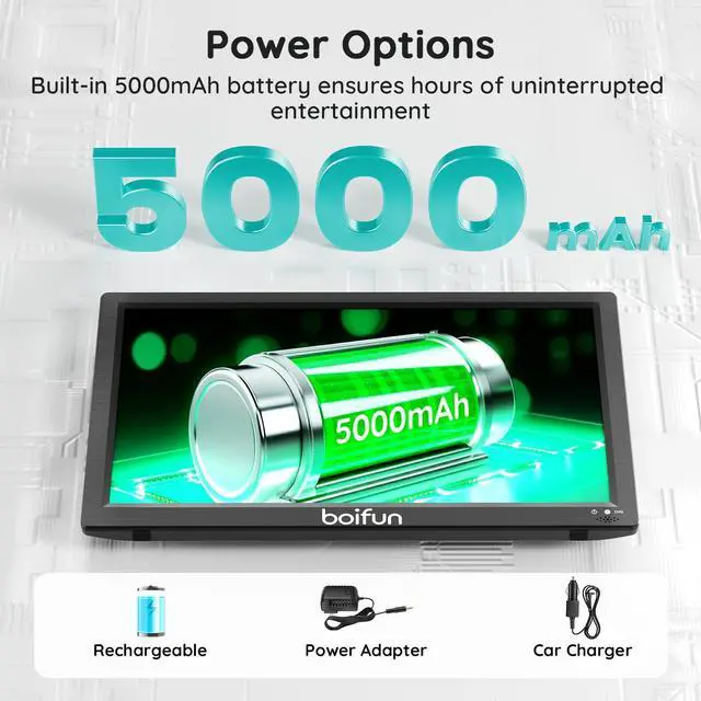 - 5000mAh Battery Capacity- Watch up to two full movies on a single charge with the reliable 5000mAh battery. This portable TV DVD player combo is ideal for road trip, beach outings, or power outages.