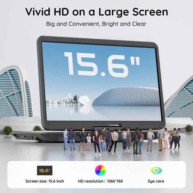 - Large Screen Entertainment -- Enjoy your favorite DVDs and TV shows on a crisp 15.6-inch HD screen. Whether you're camping, at home, on a road trip, or facing a power outage, this portable DVD player with screen provides the ideal entertainment solution anytime, anywhere.