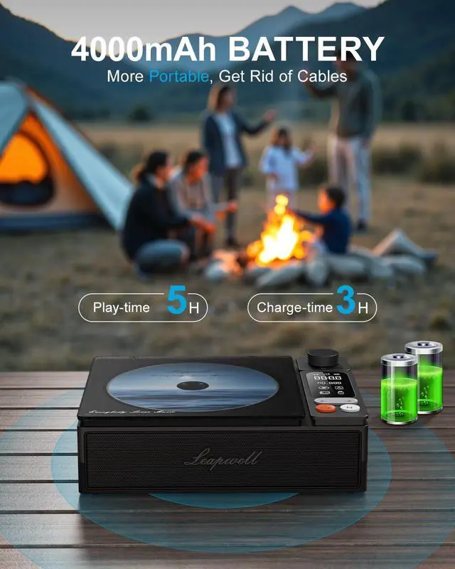 Bluetooth CD Player: Receive Mode: Easily connect your mobile phone, tablet. Transmit Mode: Connect the CD player to additional speakers, headphones. Portable CD player built-in USBC fast-charging battery that can play for 4-5 hours. Compact design makes it easy to carry, and you can enjoy great music while walking or camping. Get rid of the wires restraint now. CD Player Bluetooth