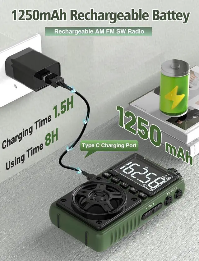 Equipped with bright flashlight,whether you're setting up camp, navigating through the woods at night, or simply relaxing by the fire, our Portable Radio with Flashlight will brighten your experience. Stay connected and safe while enjoying the great outdoors!