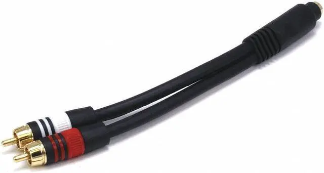 6inch Premium 3.5 mm Stereo Female to 2RCA Male 22AWG Cable (Gold Plated) - Black While most mobile devices use the 3.5 mm stereo headphone output, most home audio systems with an amplifier or receiver use RCA jacks for audio inputs. This cable is ideal for adapting the output of your mp3 player or phone to stereo RCA plugs for connecting to your home audio system. The cable is made of heavy-duty coaxial cable for each conductor. The conductors are 22AWG and each conductor is shield to prevent EMI or RFI interference from entering your audio system.