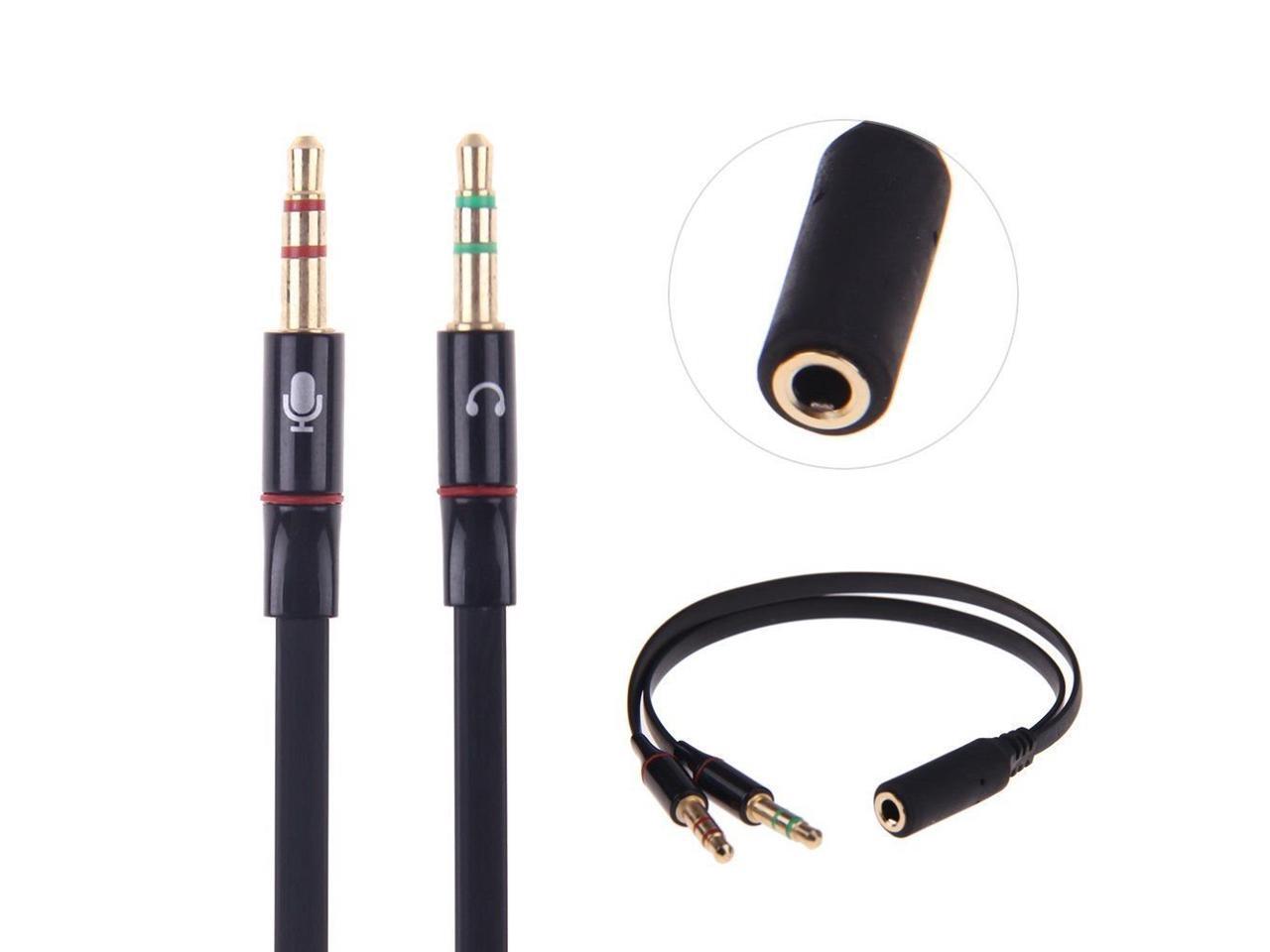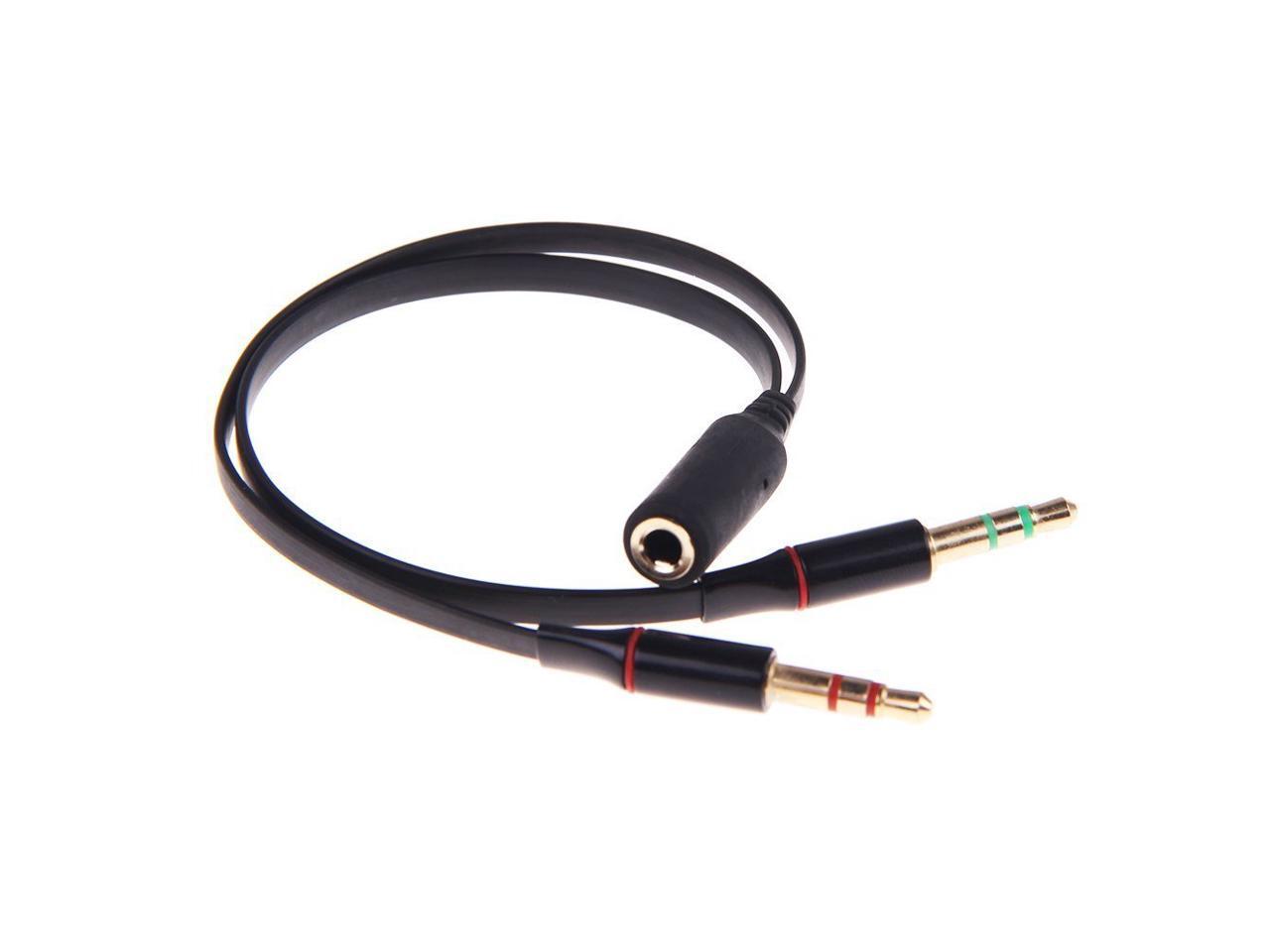 Corn Electronics 3.5mm Female to 2 Male Gold Plated Headphone Mic Audio Y Splitter Flat Cable