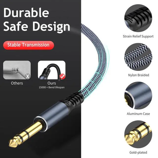 - 1/4 inch extension cable with 24K Gold-plated for better sound quality output and minimal signal loss and has a more better anti-oxidation capacity.
