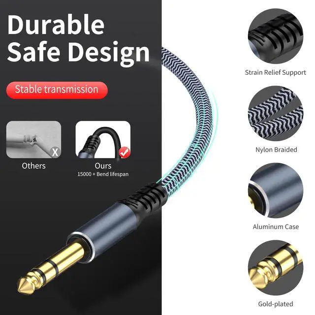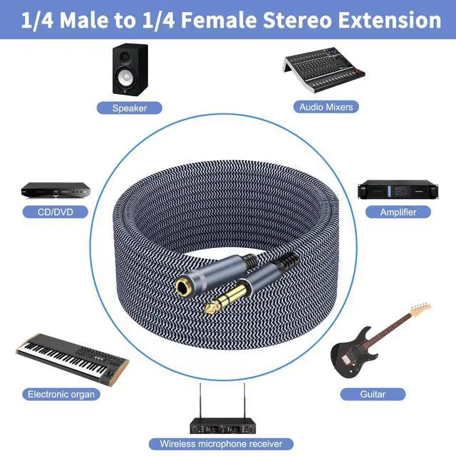 - #26AWG premium 1/4 inch extension cable jacket is braided outside, it increases the wear resistance of the wire and the service life is more longer.