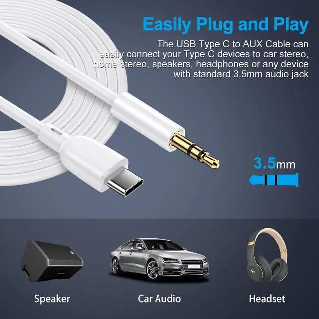 This USB C to 3.5mm aux cable cord iphone 16 aux cord can easily connect your Type C devices to car stereo, home stereo, speaker, headphones or any device with standard 3.5mm audio jack or Aux-in port and offers you the freedom of listening to music.