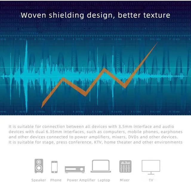 With copper and double shielding, this dual 6.35mm to 3.5mm audio cable could provide maximum's conductivity and durability, and ensure exceptional sound quality.