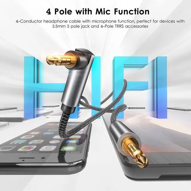 USE: 3.5 mm audio stereo cable 90 degree right angle can easily connect any of your 3.5 mm audio port equipped, 2018 Mac mini, smartphone, Mp3 player or tablets to your car, portable wireless bluetooth speakers or home stereo, compatible with any digital devices with standard 3.5 mm jack audio