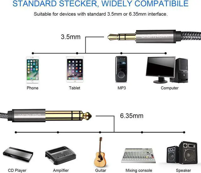 DIGITNOW 6.35mm 1/4'' to 3.5mm 1/8'' Male TRS Stereo Audio Cable is capable of carrying 'stereo' (left, right) audio signals.